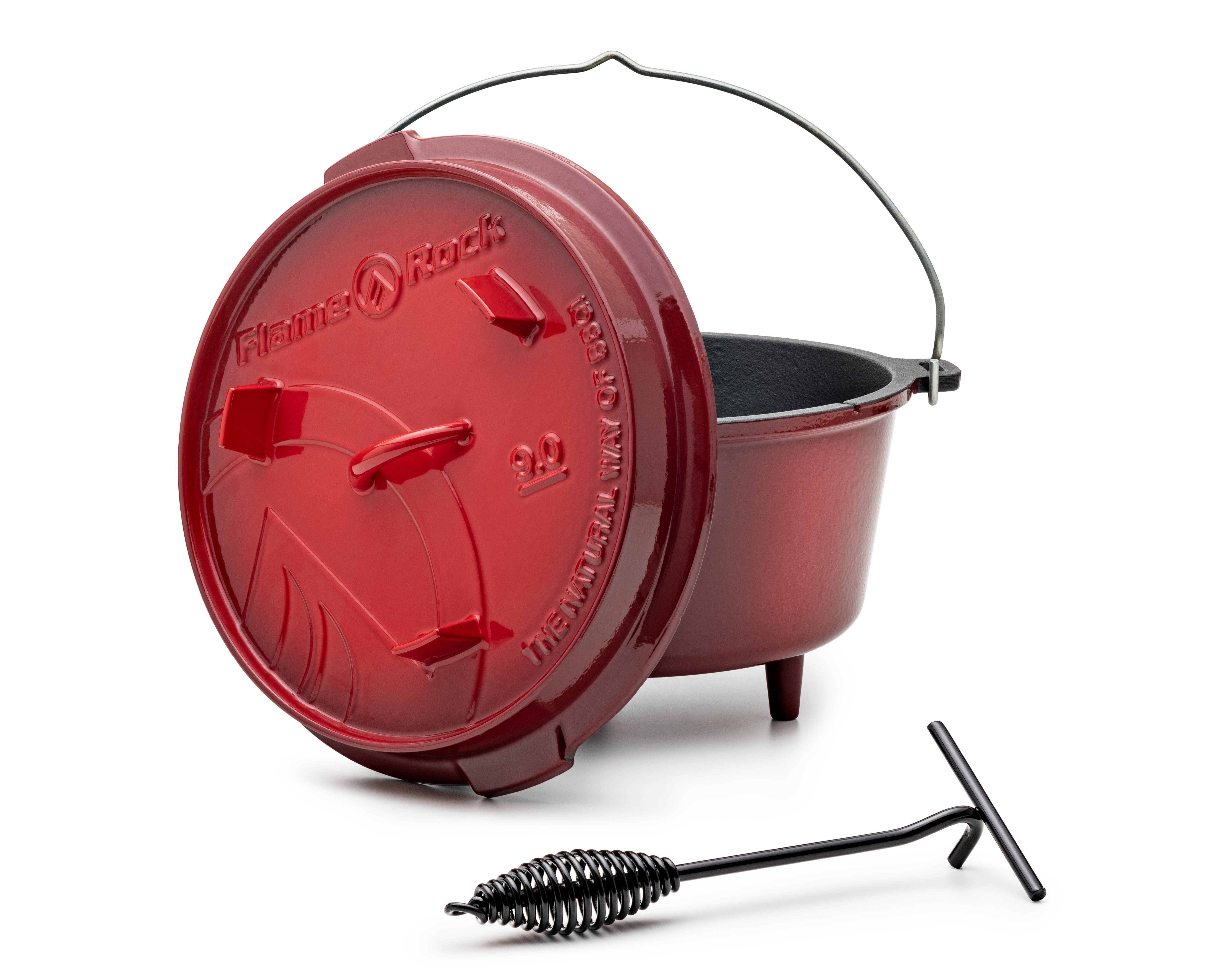 Freu dich drauf, unsere Flame Rock Dutch Ovens direkt nach Lieferung zu verwenden! Im Anschluss an die Fertigung wird der Dopf mit Speiseöl eingerieben und für circa 1,5 Stunden bei 200 - 250 Grad richtig eingebrannt. Wische den Topf vor der Erstbenutzung mit etwas heißem Wasser ab und es kann losgehen!