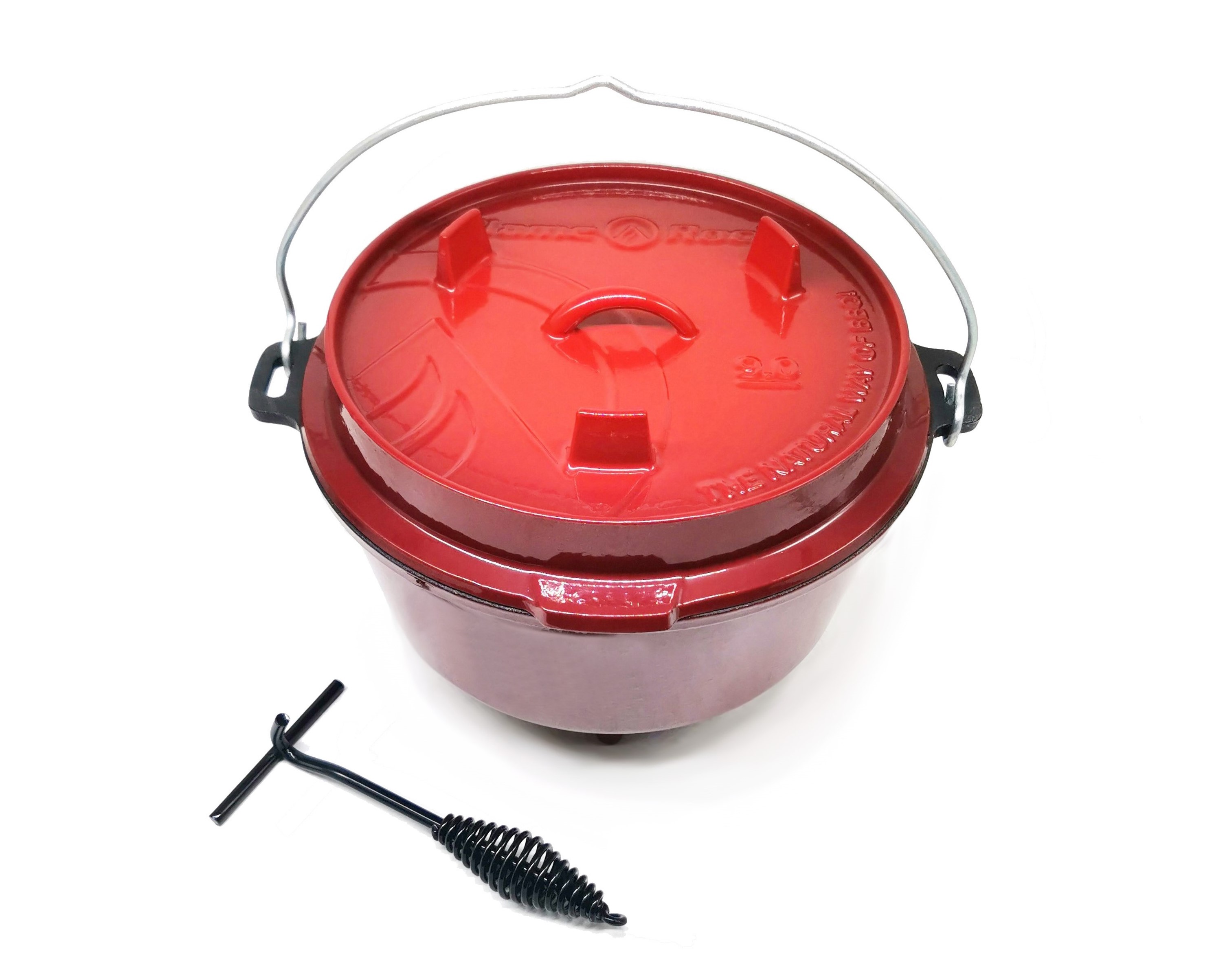 Feuertopf mit 7,85 Liter Fassungsvermögen- Gusseiserner Dopf in rot emailliert mit 7,85 Litern