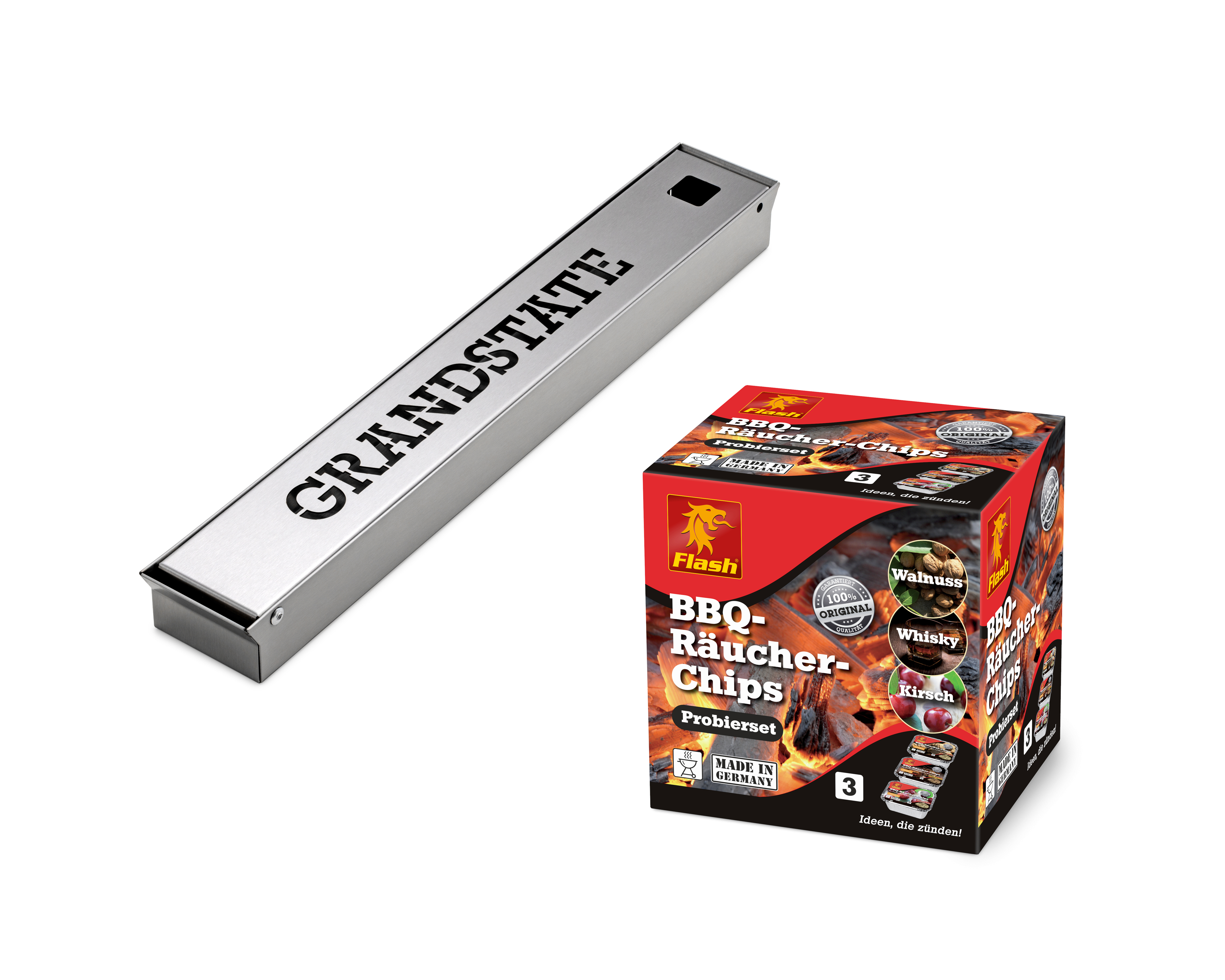 Edelstahl Räucherbox Grandstate mit Räucherchips Probierset