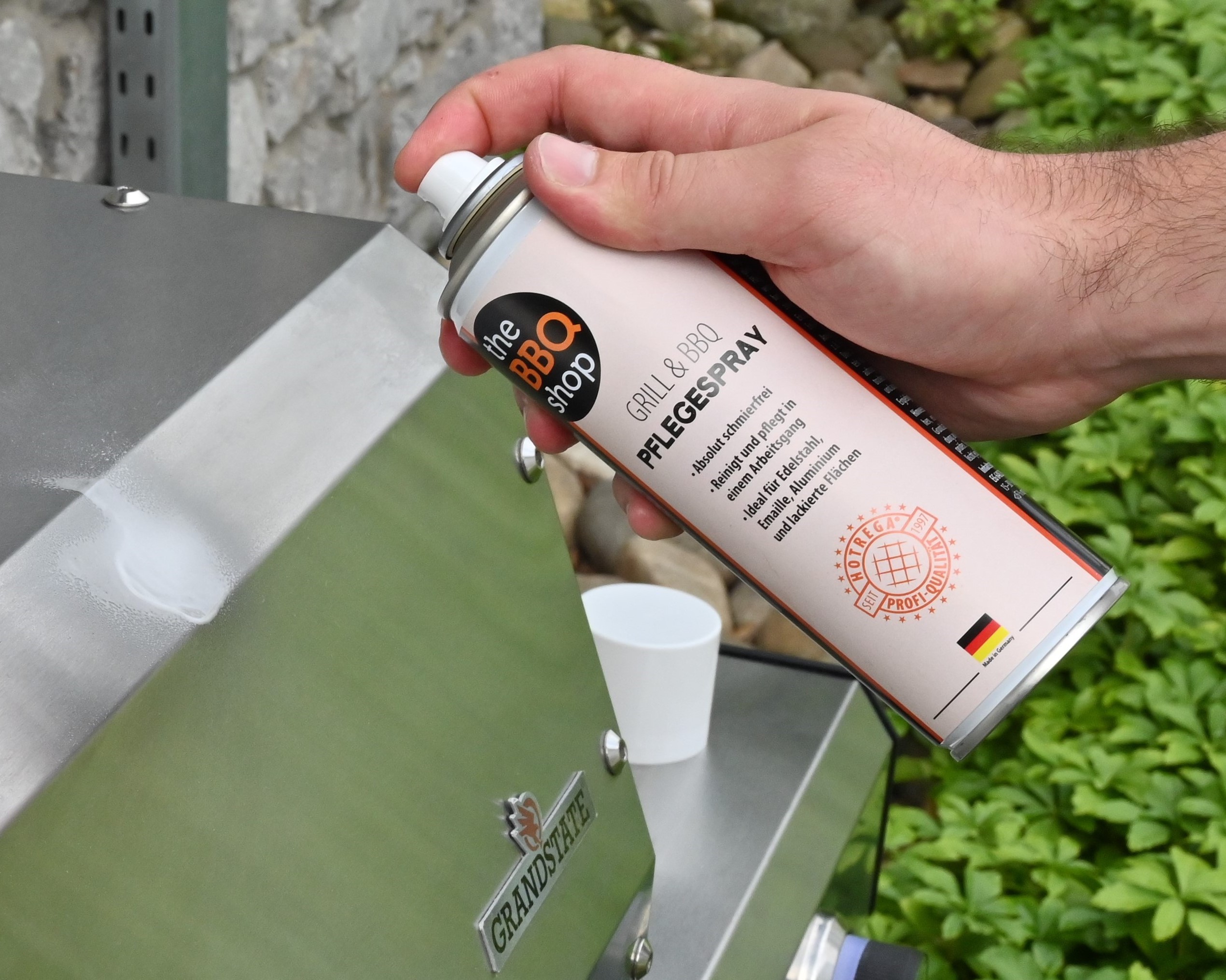 Dieses starke Team lässt deinen Edelstahlgrill wieder neu erstrahlen! Die feinen Polierkörper in unserer Politur entfernen während des Verteilens porentief und effektiv Verschmutzungen, Rost, kleine Kratzer, Anlaufstellen und leichte Verfärbungen. Das Pflegespray wirkt nach dem Auftragen wie ein Schutzfilm auf der Oberfläche deines Grills, Fingerabdrücke und hartnäckige Fett-, Öl- und Kalkverschmutzungen werden verringert. Gönne deinem Grill eine solche Behandlung, er hat es sich verdient und du erhöhst hierdurch seine "Lebenszeit".