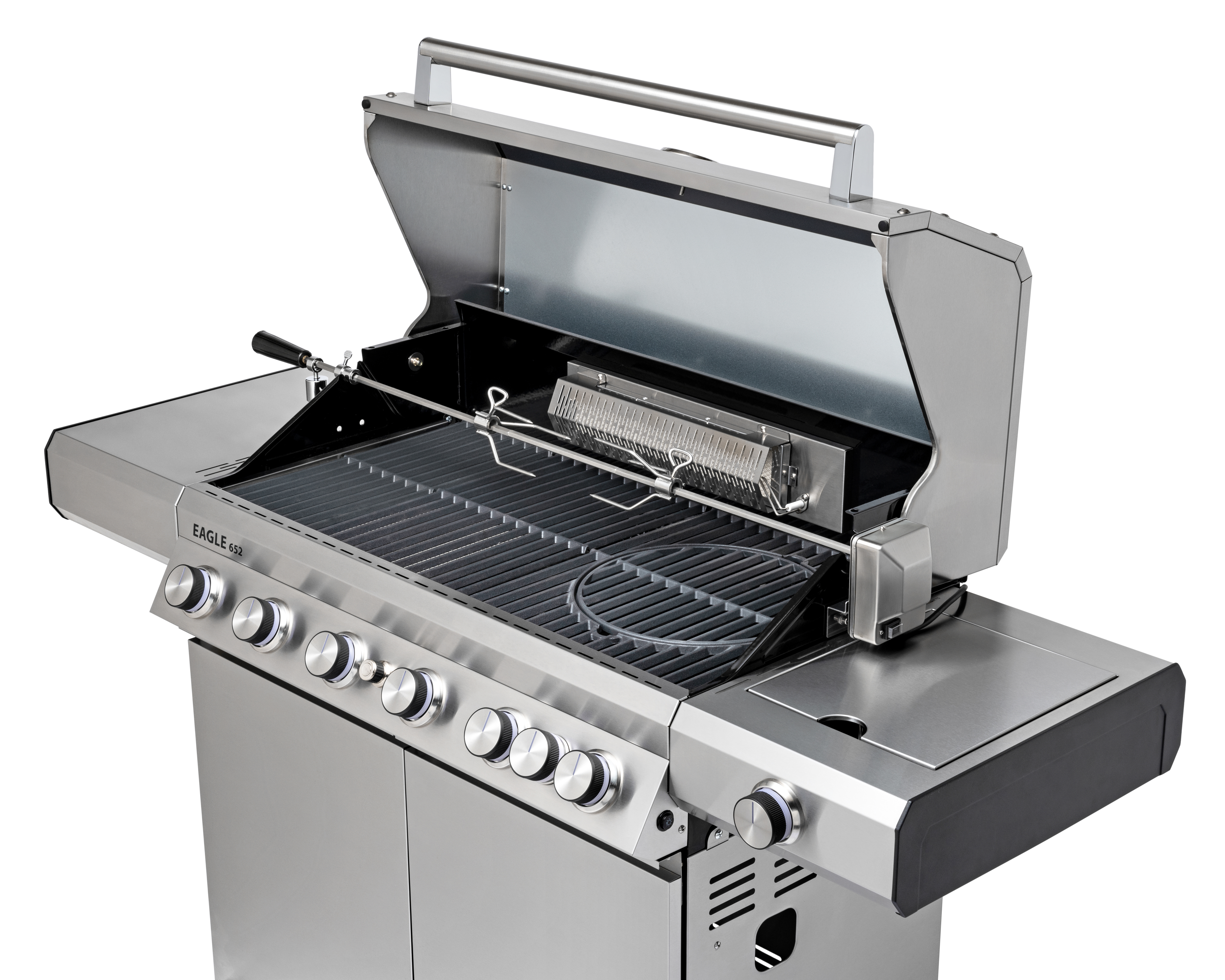 • Bitte beachten: Beim Hawk 411 ist der Grillspieß nur bei geöffnetem Deckel anwendbar