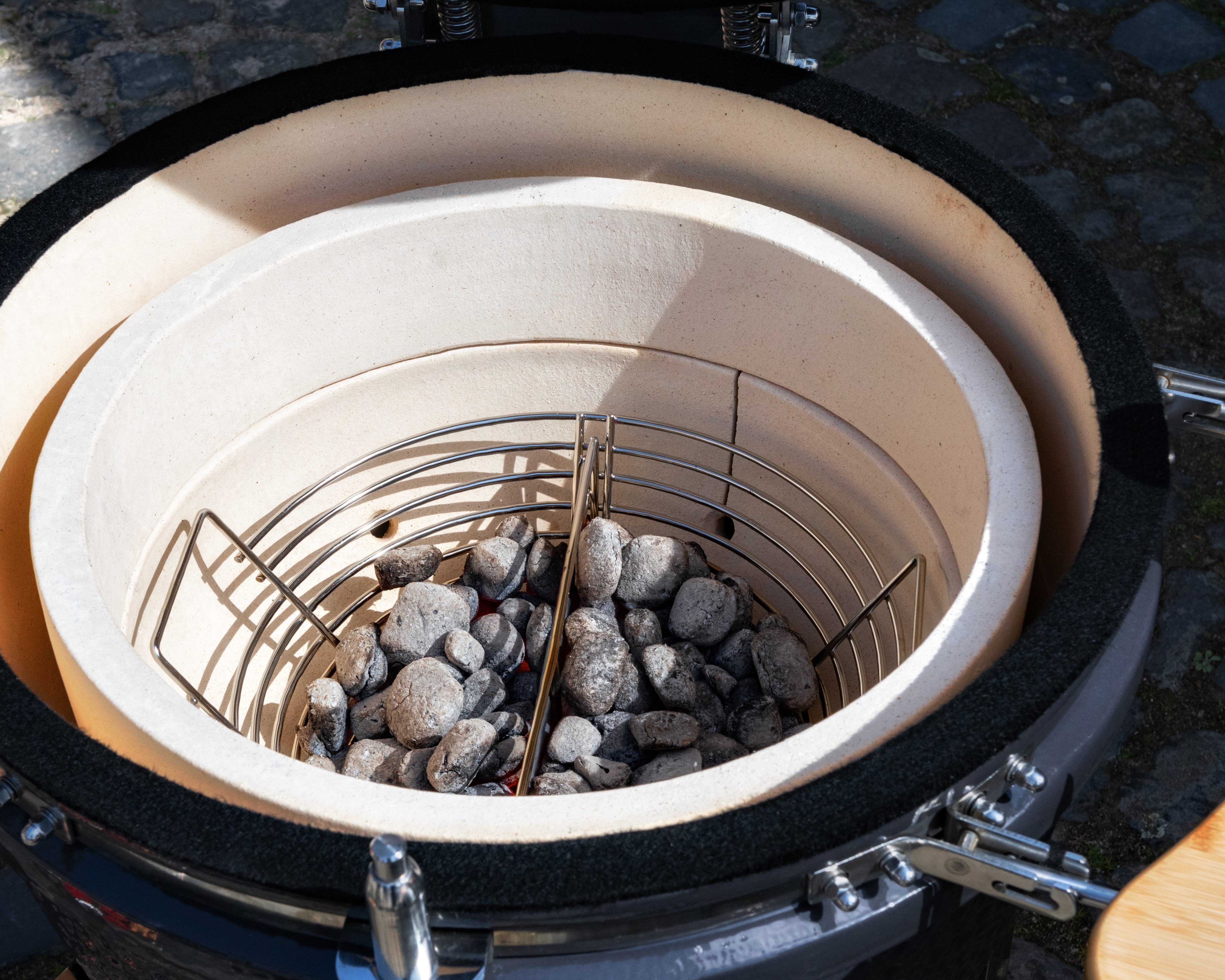 • Benötigst du eine gleichmäßige Hitzeverteilung, kannst du die Kohletrennung des Kohlekorbs ganz einfach herausnehmen