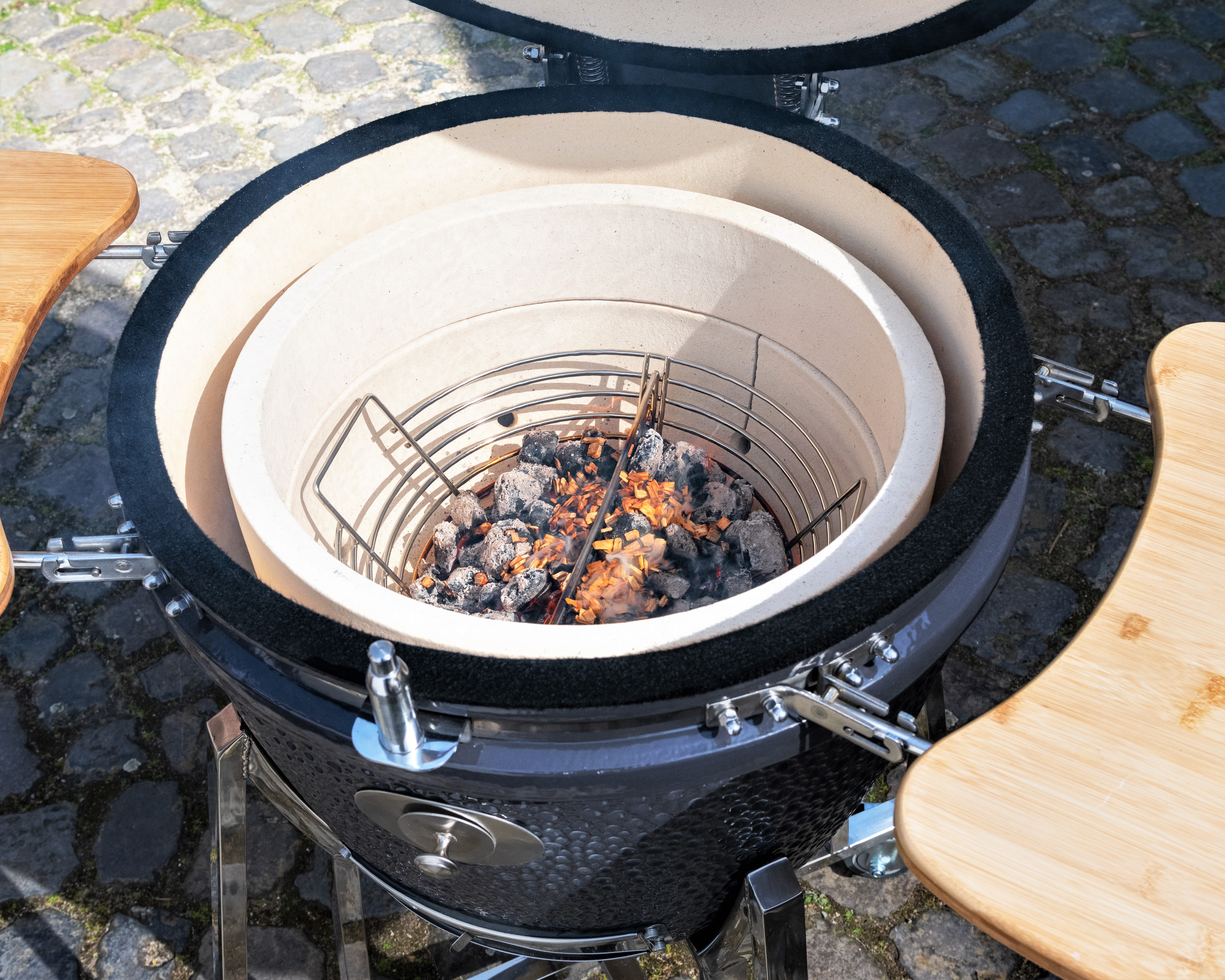 • Einfache Reinigung des Keramik-Feuerraumes nach dem Grillen