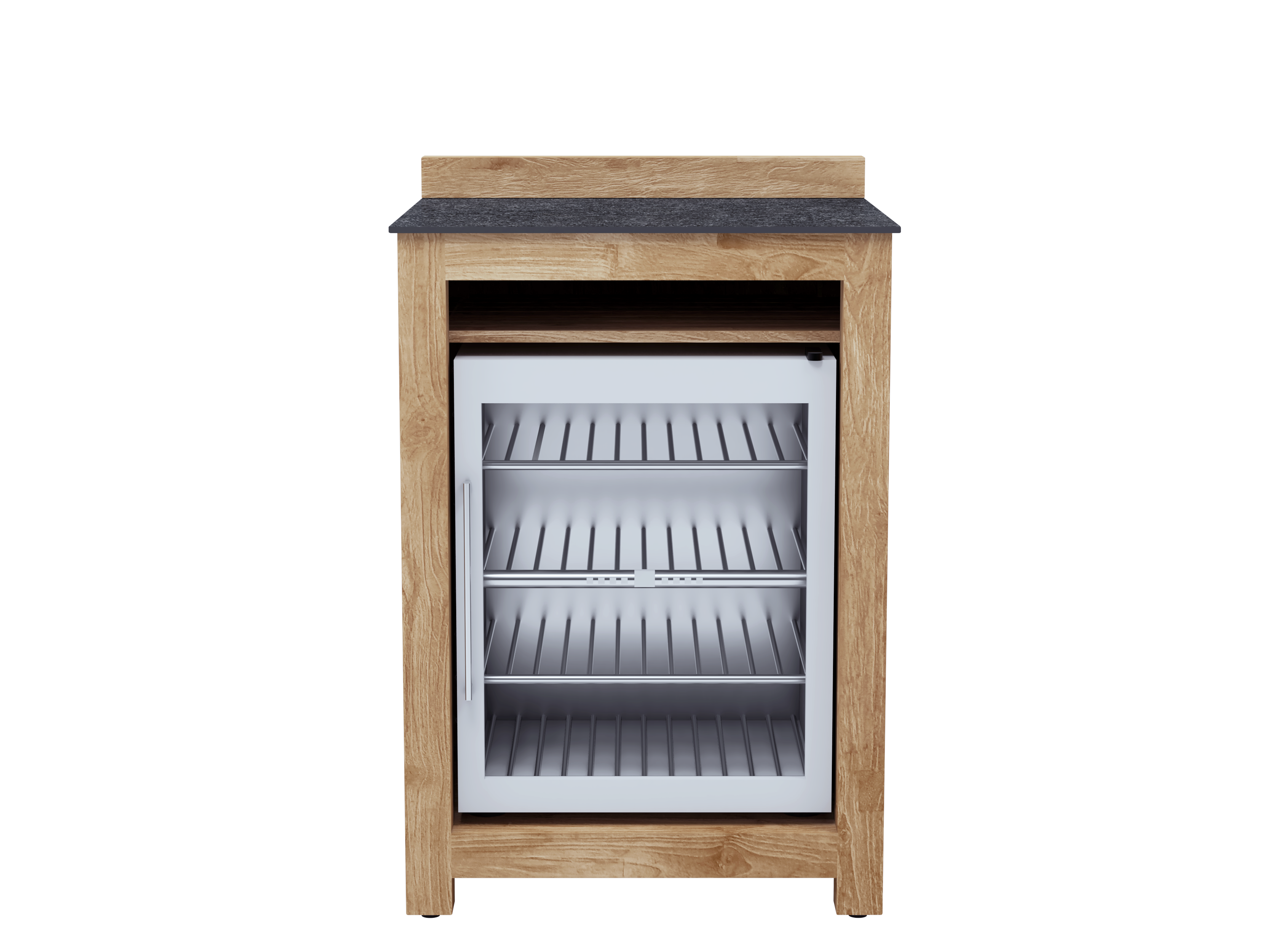 - Schrank verfügt über eine Öffnung im hinteren Bereich, sodass ein Stromanschluss zum Kühlschrank ermöglicht wird