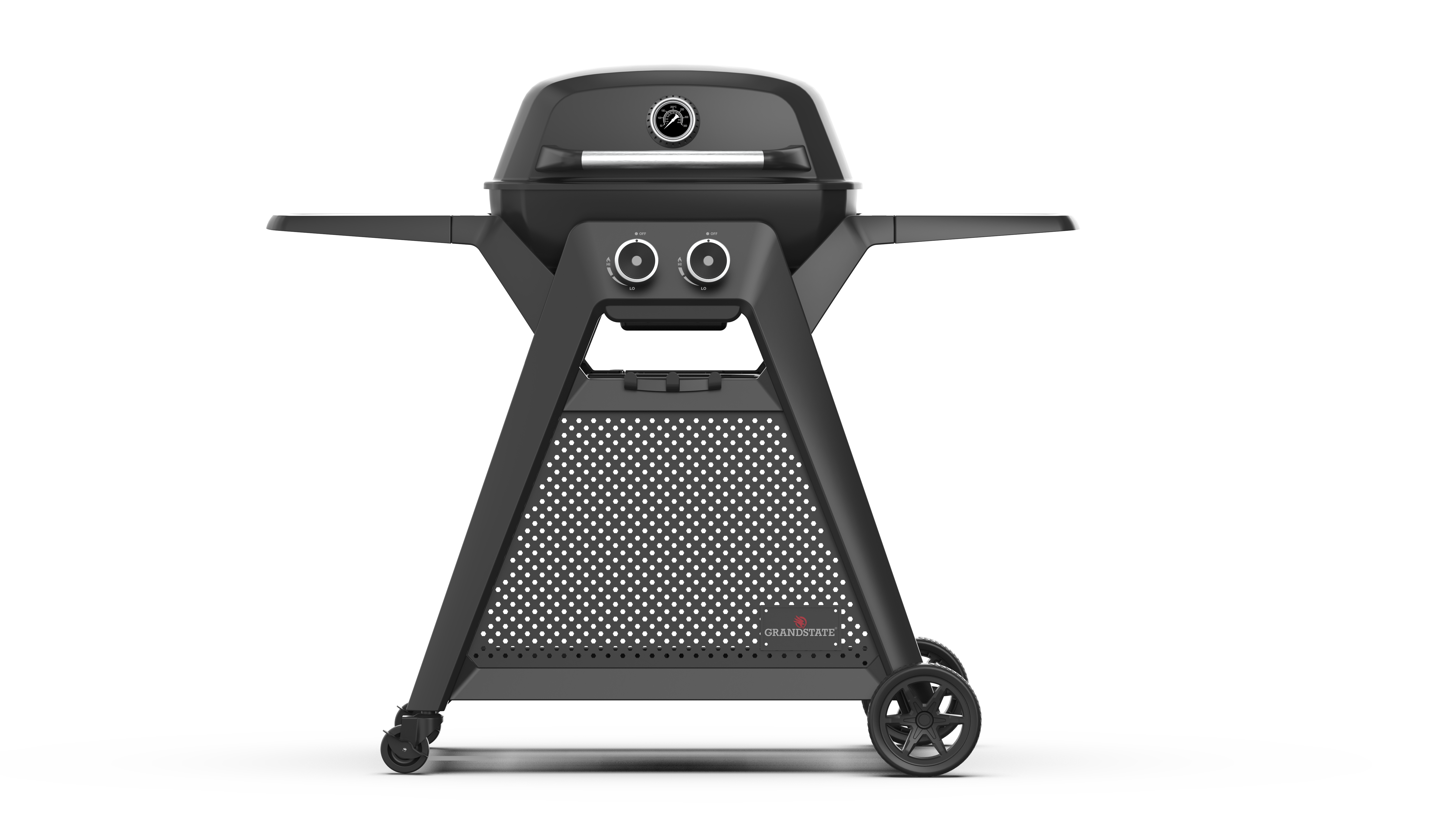 Der Grillwagen des Black Kite 200 bietet Ablagemöglichkeiten für die Fußkappen des BBQs, Gussroste und abnehmbare Seitenablagen – weiter ist der Grill hiermit variabel verschiebbar und durch integrierte Bremsen an zwei Rollen des Wagens in Position zu bringen.