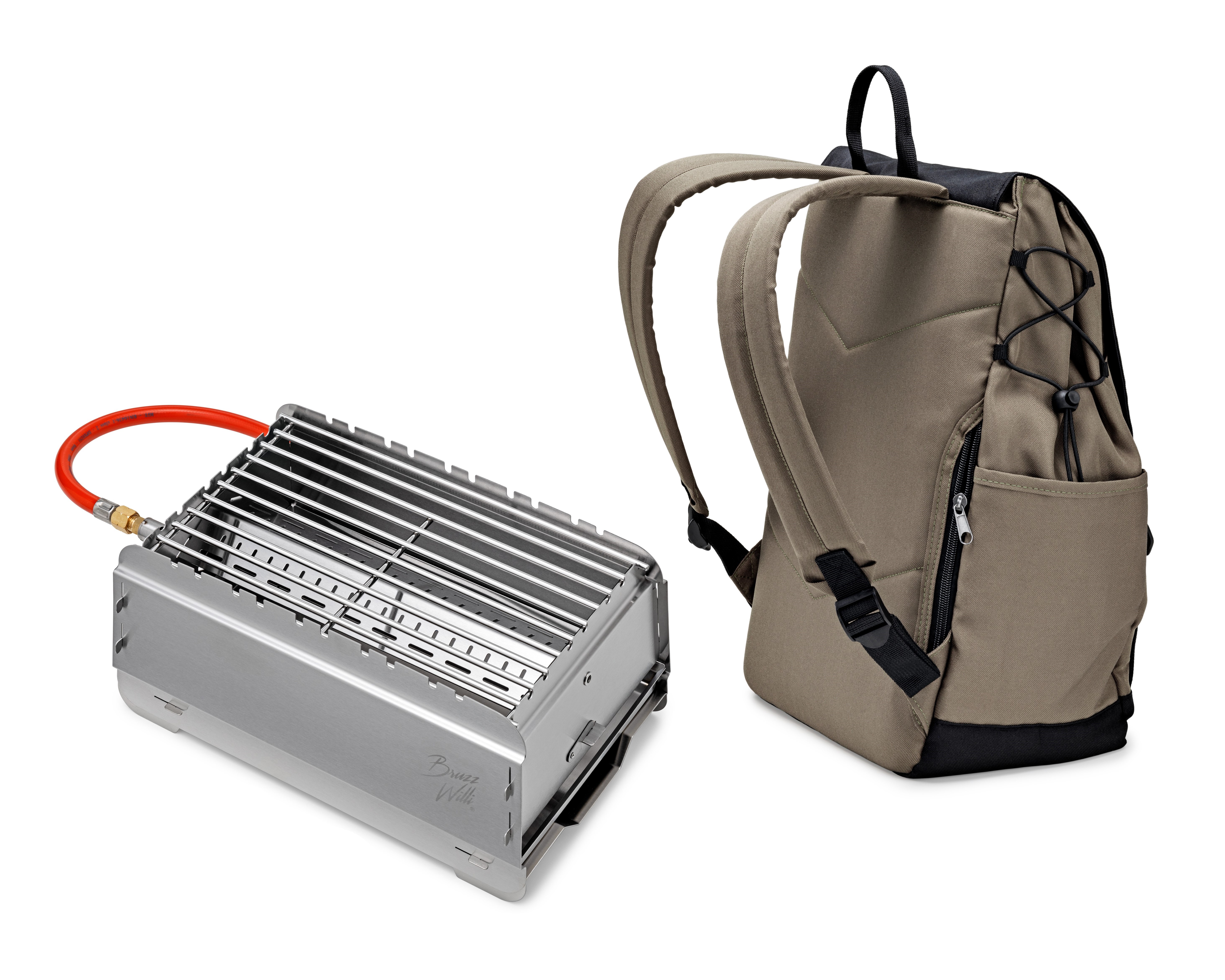 Bruzz Willi mit Wanderrucksack- Kompakter 50 mbar Gasgrill BW 1.1, gefertigt aus Edelstahl