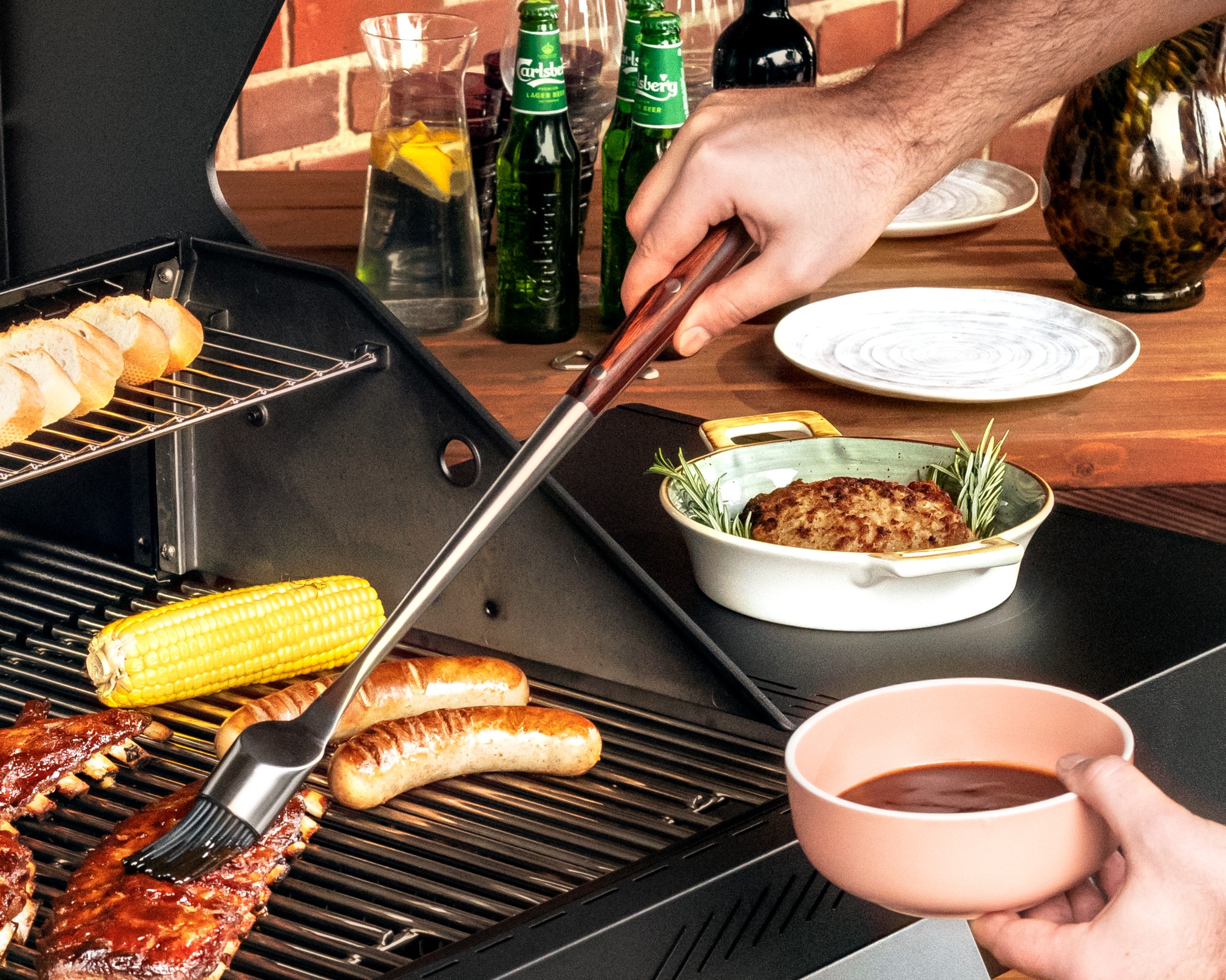 • Deluxe Grillpinsel aus Edelstahl mit Holzgriff