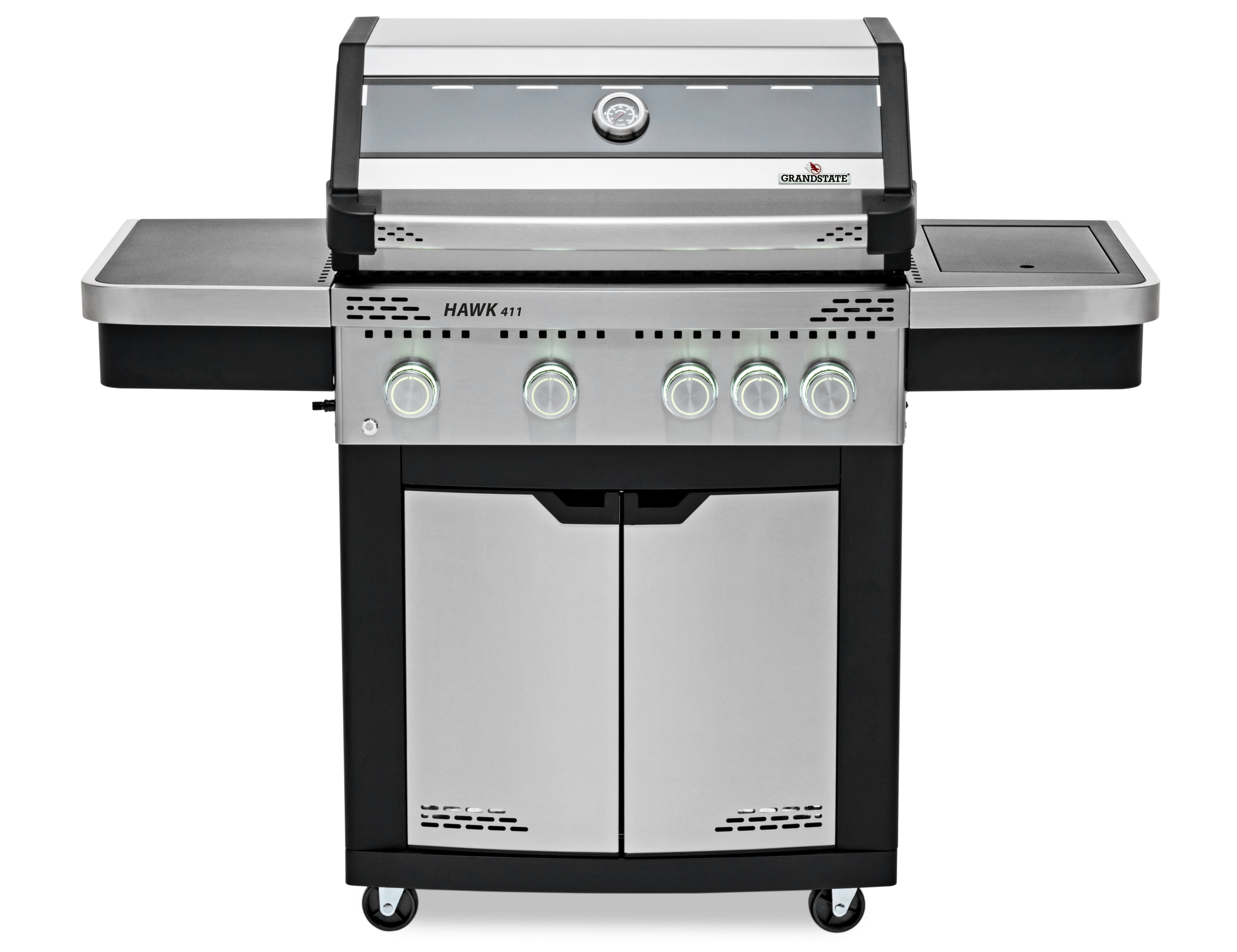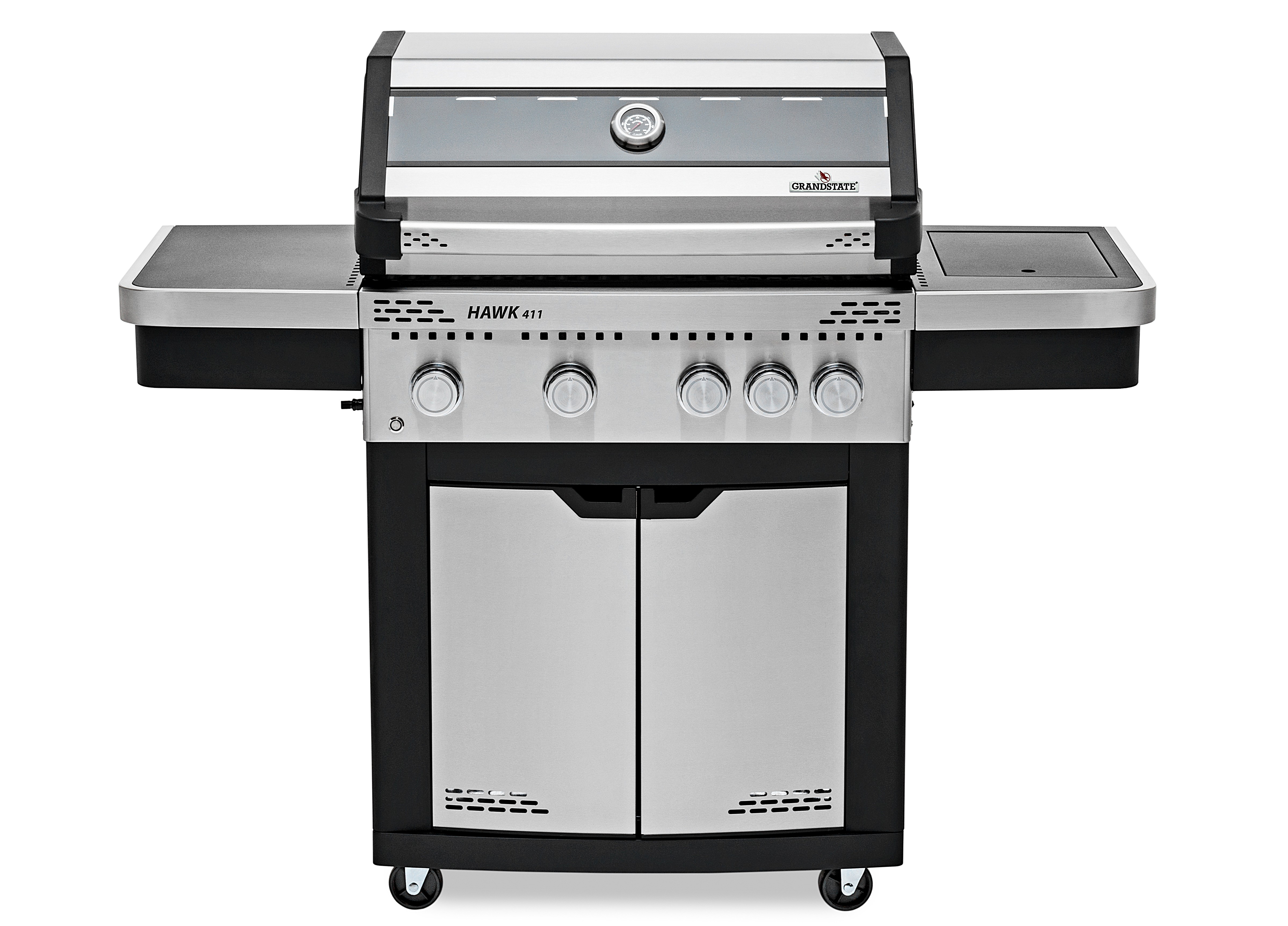 4 Brenner Gasgrill mit 1 Infrarot-Steak-Brenner und Seitenkocher- 4 Brenner Gasgrill mit doppelwandiger Haube und großem Sichtfenster
