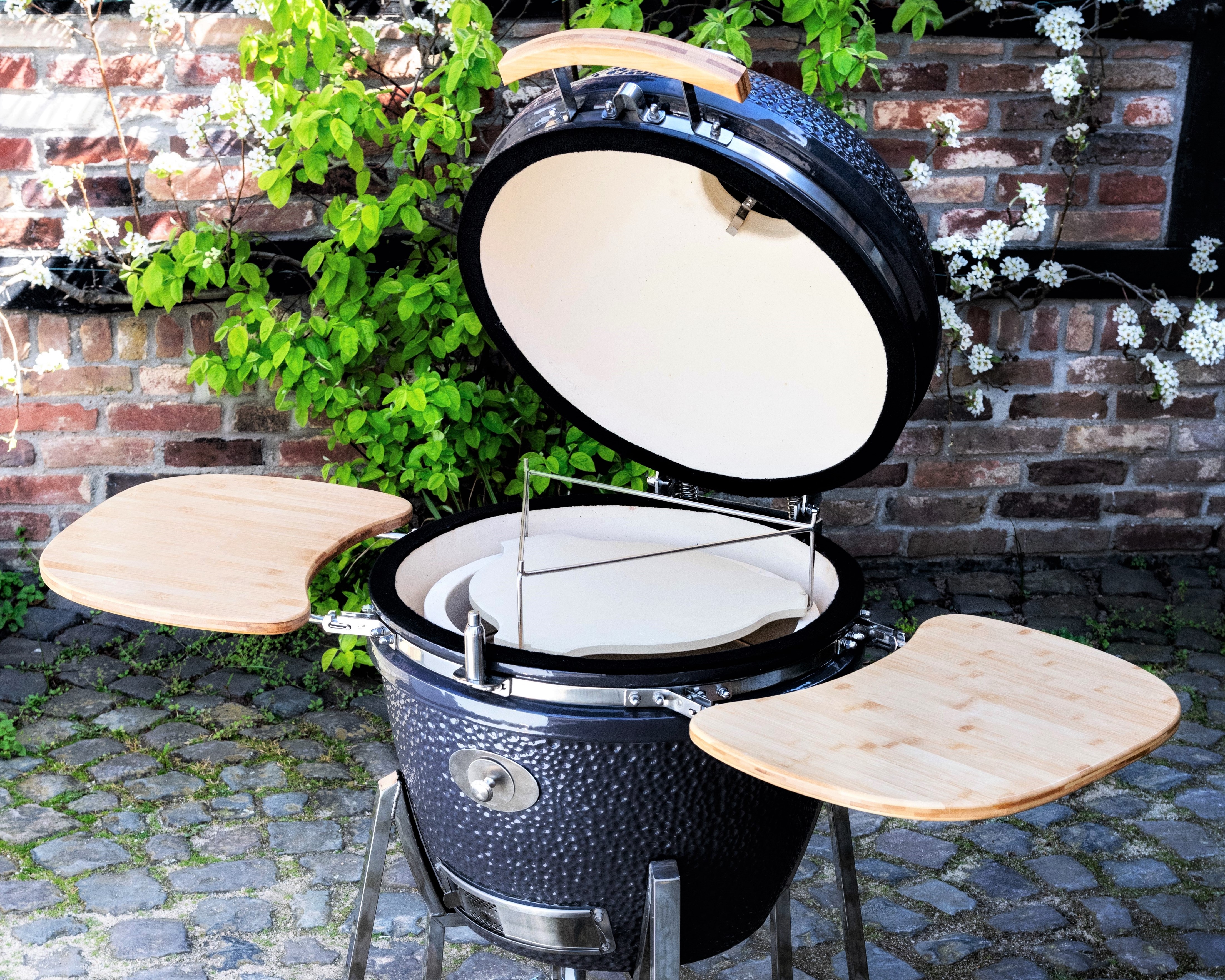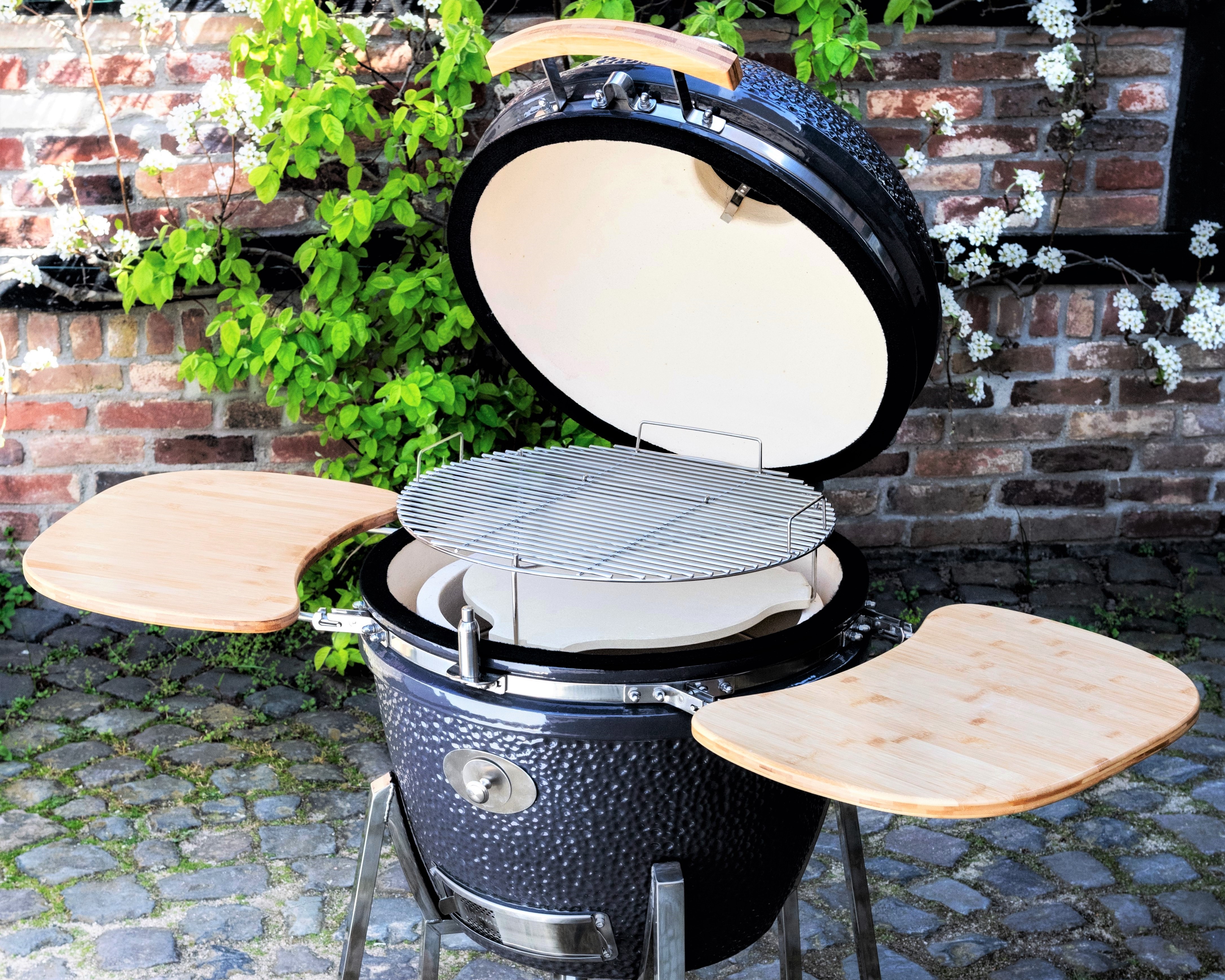 • Beide Standard-Edelstahlgrillroste der Kamado 22 passen übereinander auf die Grillrost-Erhöhung