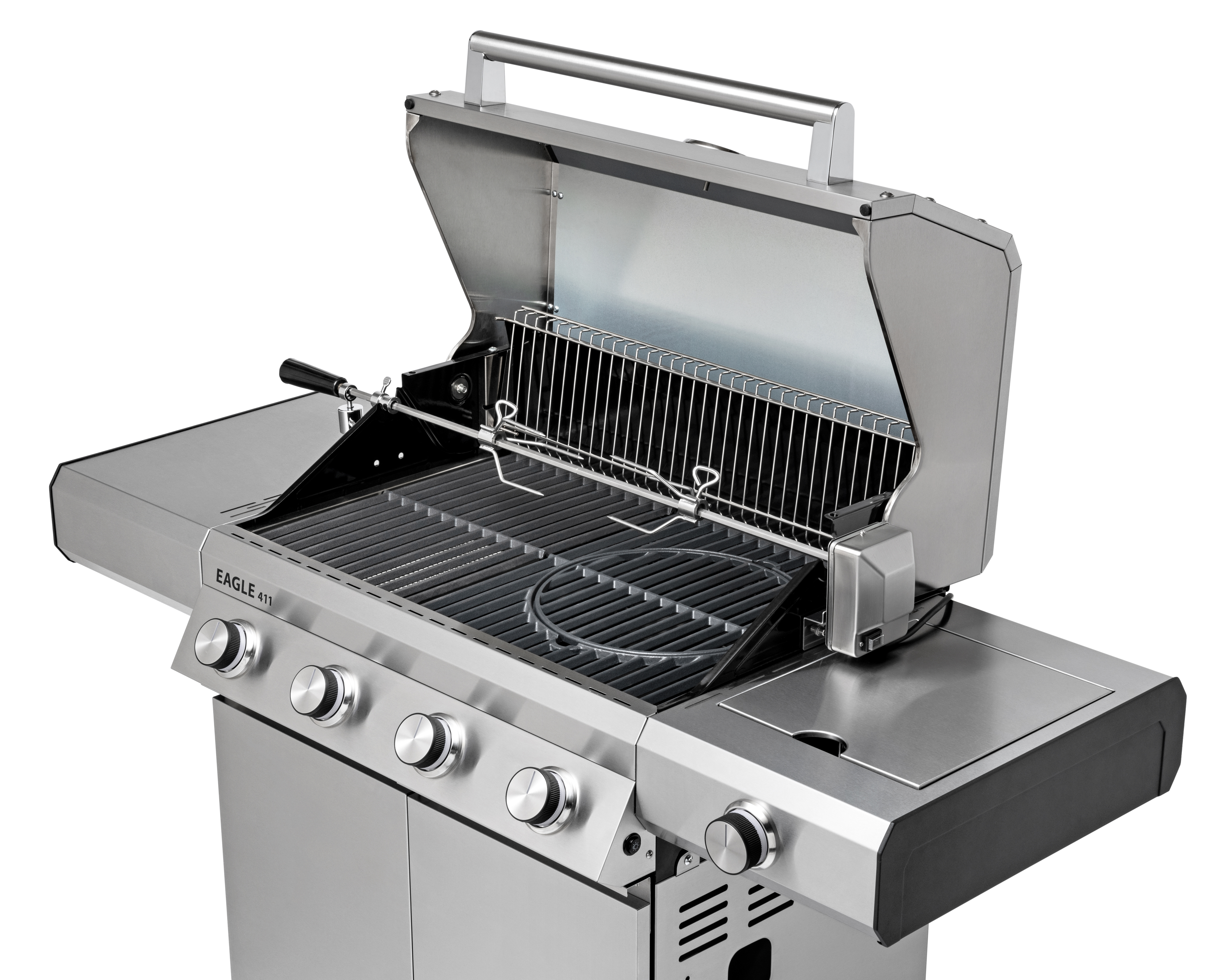 • Bitte beachten: Beim Hawk 411 ist der Grillspieß nur bei geöffnetem Deckel anwendbar
